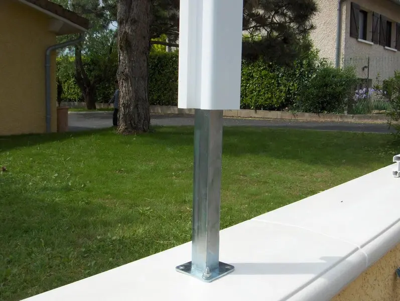 Pour une installation libre, vous utiliserez une plaque de fixation (platine) sur laquelle vient s'emboîter le poteau PVC.
